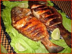 INGREDIENCE:1kg,čerstvé mořské ryby(chnˇápal,treska,makrela),4lžice olivového oleje na potírání,štáva ze 2 limetek,sůl.